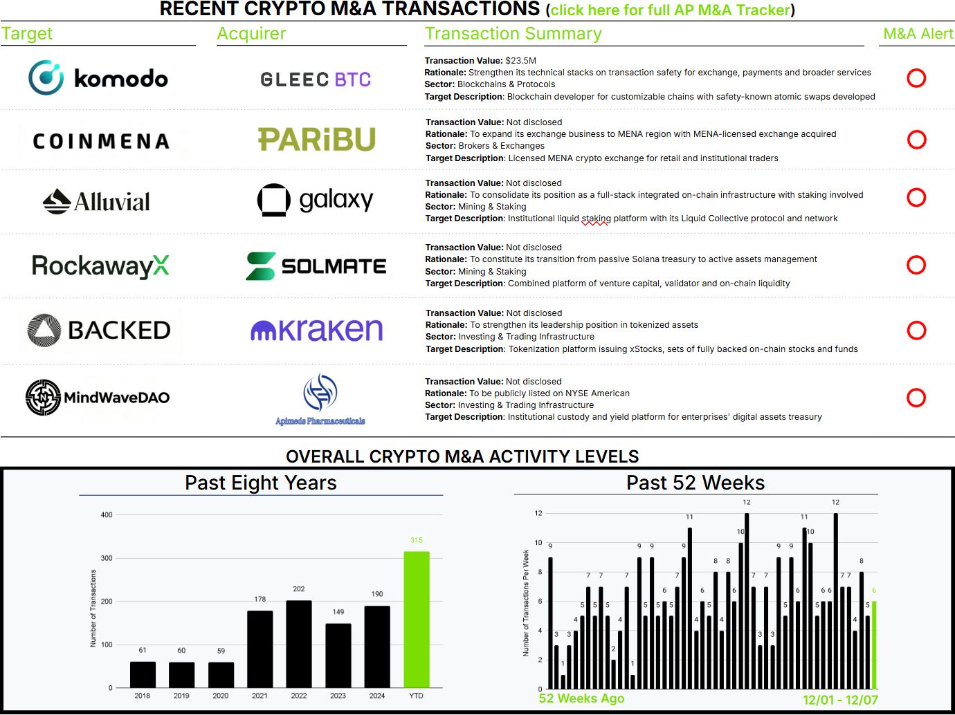 Equity is an often-discussed asset class that some feel is well suited for tokenization. This week, Kraken acquired Backed, which offers xStocks, tokens backed 1:1 by the underlying stock. The proposed value proposition is also simple: 24/7 global trading. Does this hold up to scrutiny today? Well, average trading volumes on Tesla, the most active xStock, are only 0.05% of Tesla stock volume since June 29th, 2025, demonstrating an extreme lack of liquidity. Furthermore, prices diverge slightly between these markets, with an average deviation of 0.21%.