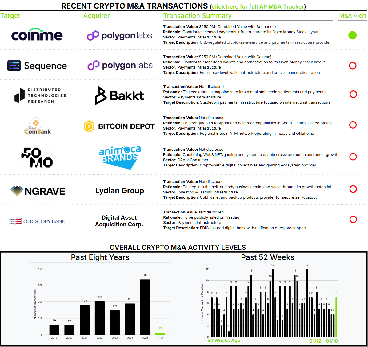 This week, Polygon Labs, closely associated with the Polygon blockchain, announced the acquisition of both Coinme and Sequence. Architect Partners represented Coinme in this transaction, and a detailed overview can be found in our linked M&A Alert. We are in numerous discussions that suggest this type of transaction will become commonplace.