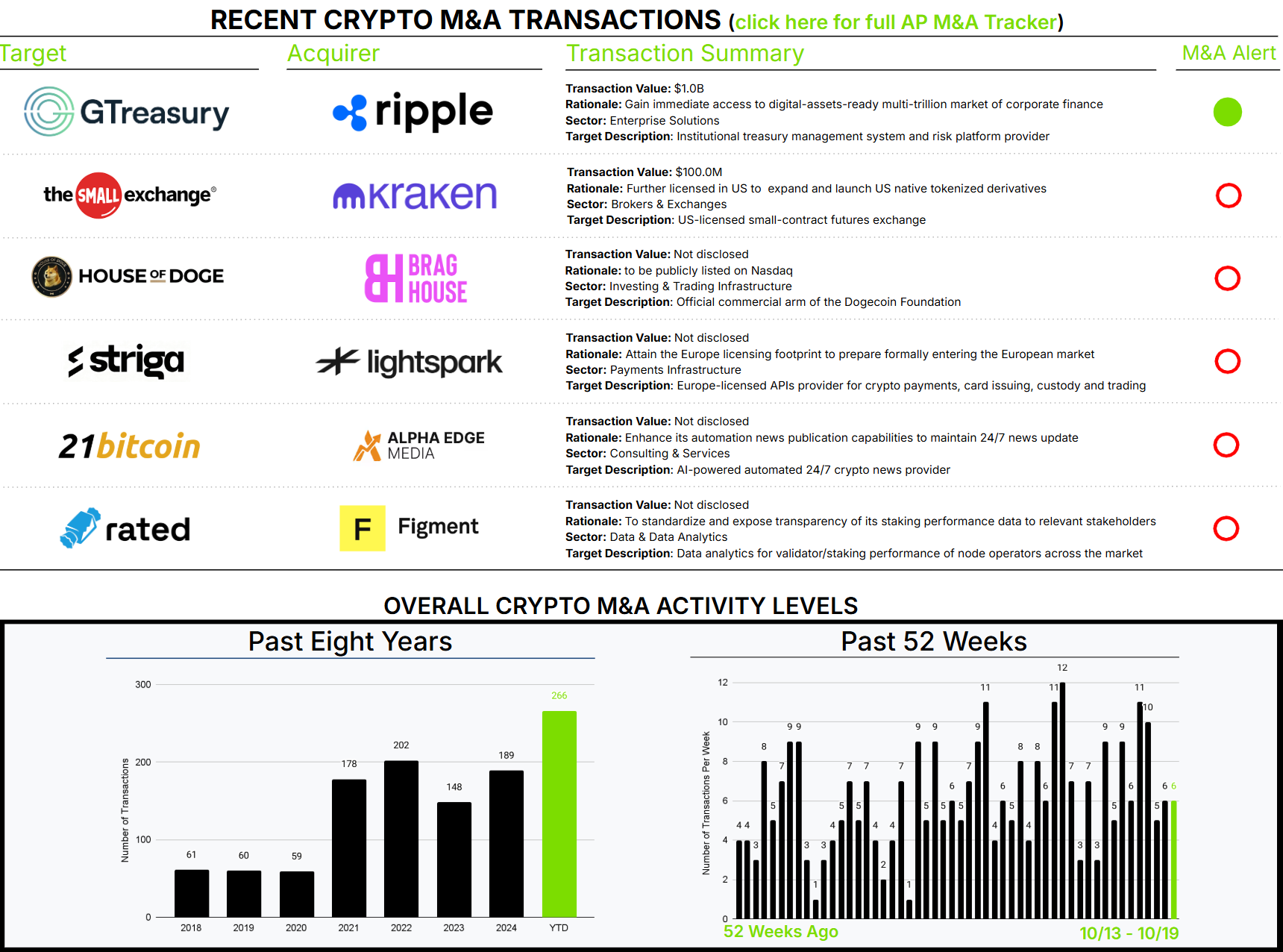 We have been highlighting “bridge M&A” for years. This is either traditional businesses acquiring crypto capabilities or the reverse. Each side brings strategic value to the other. Crypto businesses deliver the innovation, traditional businesses provide the customer relationships, or “distribution.”