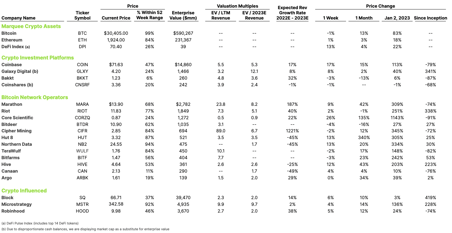 Yet the apparent regulatory intransigence and lack of clarity from the SEC have had a volatile impact. BTC soared on the wave of ETF application, and network operator Core Scientific gained 26% this week alone. But BTC’s flight was briefly clipped back below the $30,000 mark on the WSJ report that the SEC views the ETF filings as inadequate (but without much direction on what “sufficient” would look like).