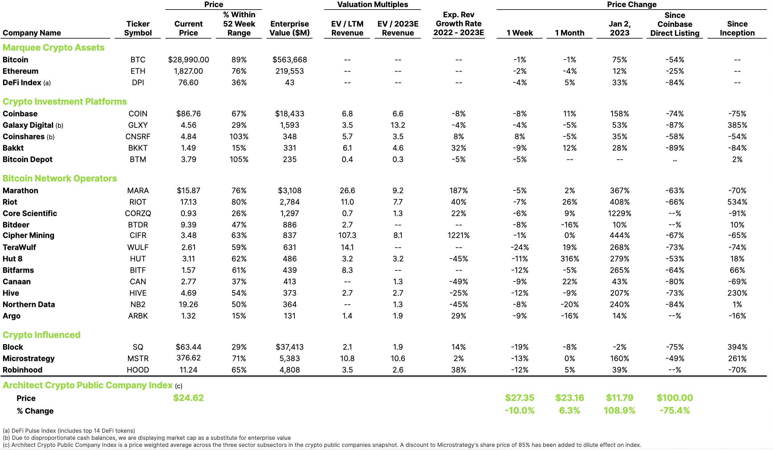 The first two highlight efforts taken across the industry to reduce costs and increase cash flows, and to use lean times to build infrastructure for the next likely non-speculative phase of crypto: “The next 10 years in crypto,” CEO Brian Armstrong stated on the call, “will be primarily about non-trading use cases”. Coinbase has bragging points on both fronts, showing strong cash flows and a second consecutive quarter of positive “adjusted” EBITDA (adjustments include backing one-time items such as severance costs following 30% staffing costs, and stock-based comp expenses magnified by recent stock performance), while also launching new platforms such as their derivatives exchange outside the US and Base, and their on-chain layer 2 solution.