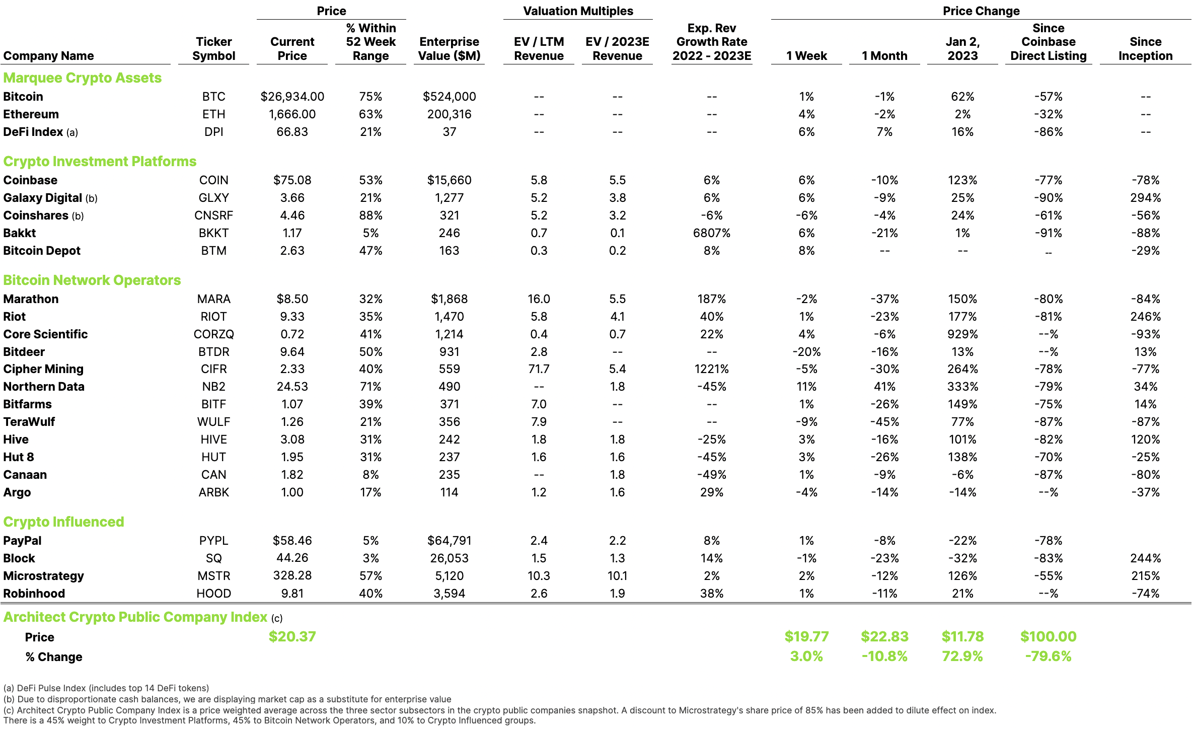 Will Q4 see a change? Historically it is the most active quarter, and the growing interaction with major institutional players should impart legitimacy and improve IPO-friendly fundamentals. But absent a thaw in SEC relations – which remain a public market gatekeeping in the US – increased kinetics for public crypto is unlikely.