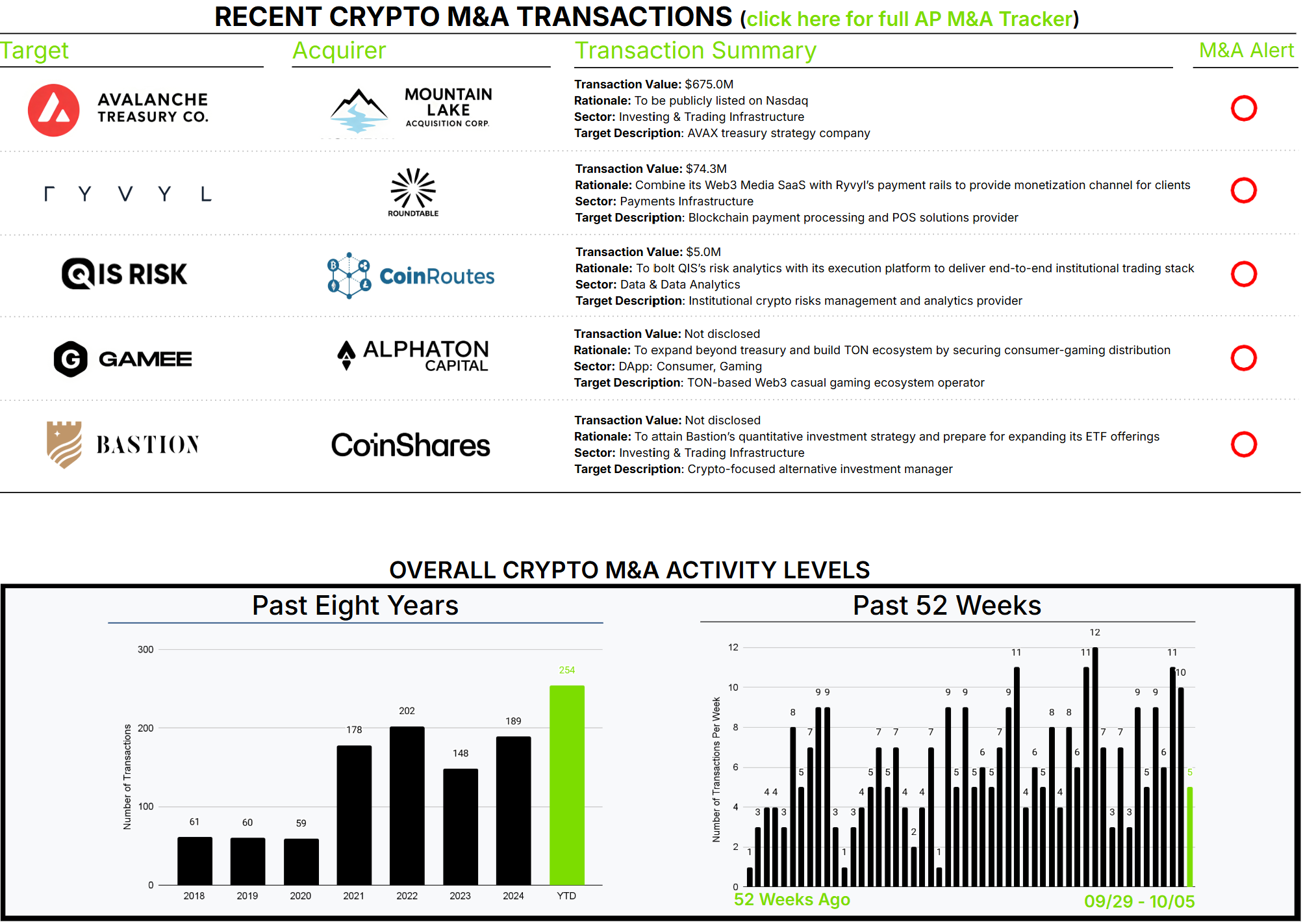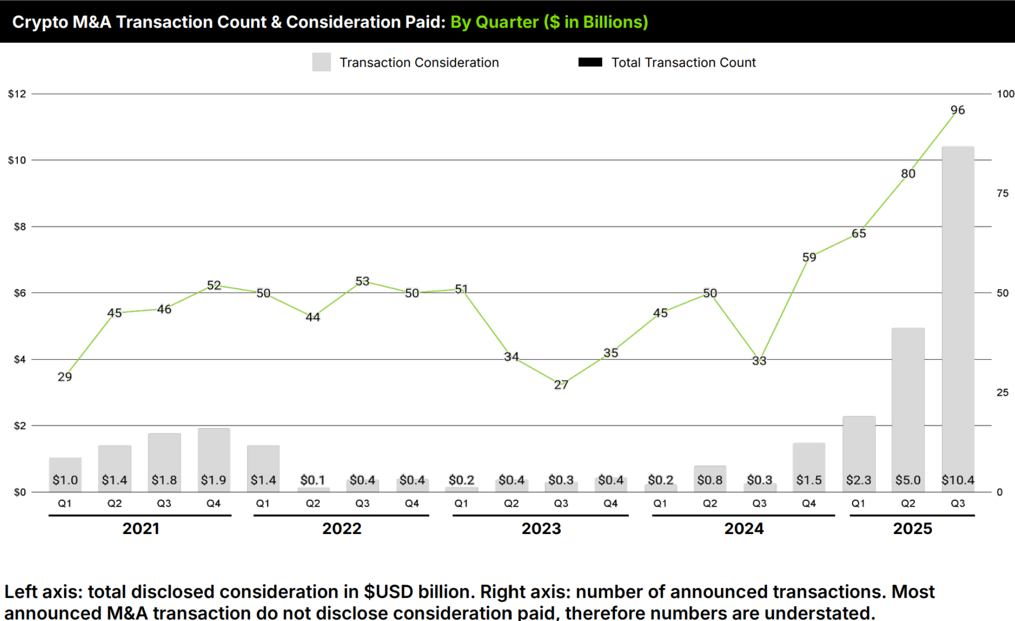 The crypto M&A market continues to strengthen, supported by newly public crypto companies becoming active acquirers and traditional financial institutions solidifying their strategic entry into crypto. See our Q3 2025 Crypto M&A and Financing Snapshot for more.